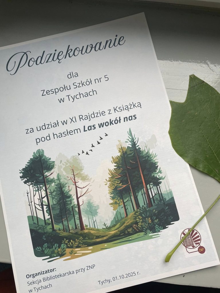 2. Udział uczniów w „Rajdzie z książką” organizowanym przez Sekcję Bibliotekarzy ZNP, którego hasłem przewodnim było „Las wokół nas”