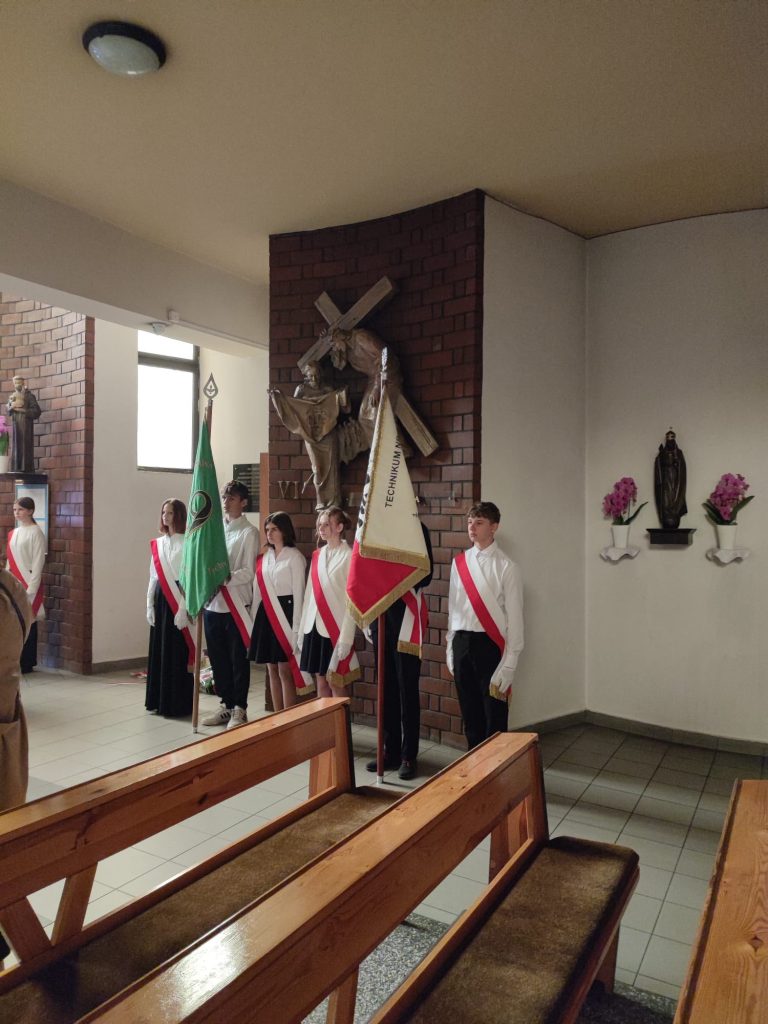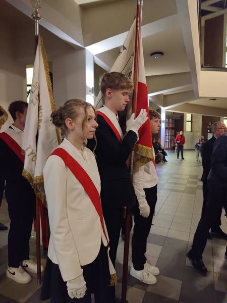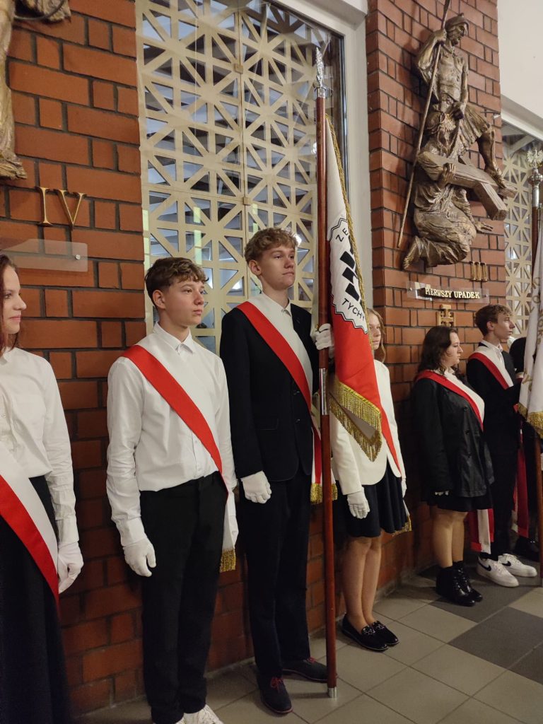 Sztandar szkoły wystawili uczniowie klas trzecich.